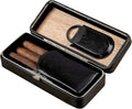 Luxury 3-Cigar Folding Leather Travel Case with Cutter – Black